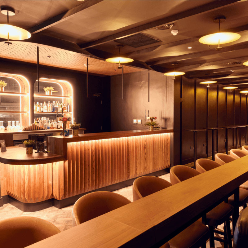 Dine in our flagship lounge from a specially-curated menu, and take in city skyline views.